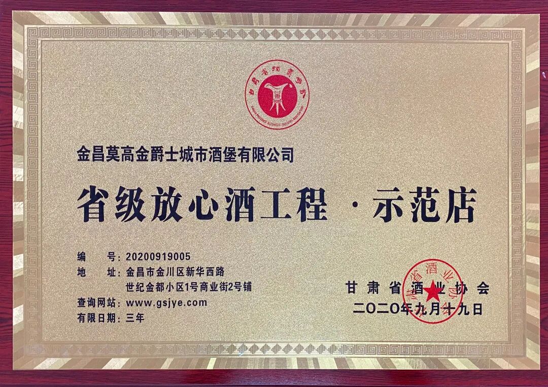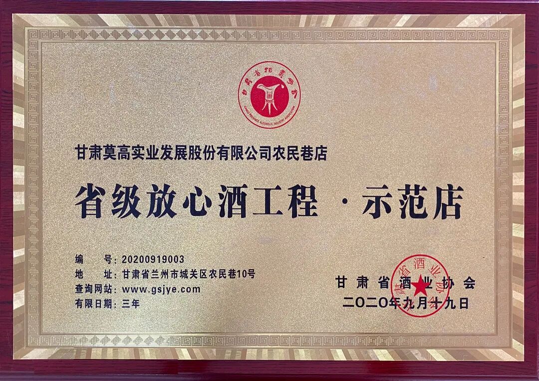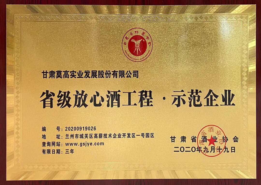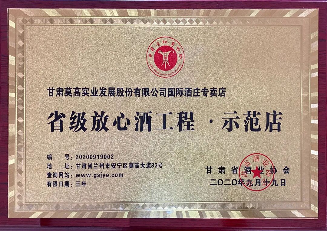 莫高公司荣获首批“省级放心酒工程·示范企业” 莫高葡萄酒4家专卖店荣获 “省级放心酒工程·示范店”